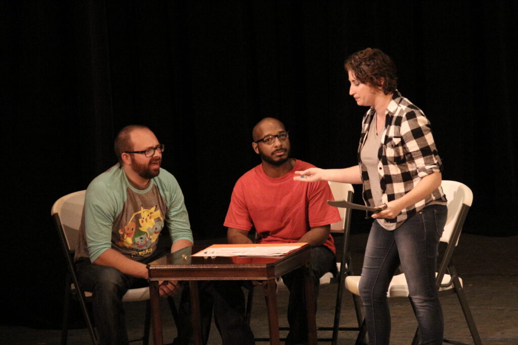 DEFINING INFINITY, which explores the infinite spectrums of gender identity and sexual orientation, finally grew up into a full 2 act play that was premiered to round out the 2023-2024 season. This show has a long history of development! It was originally conceived by pansexual non-binary LFL co-founder, Trina Fischer, in 1993 at Northwestern University, as part of the Spare Rib Festival of feminist theatre. Ever since then, she had wanted to develop it further. In 2016 and 2017, LFL adapted and expanded the existing 20 min script into a 75 minute one act for presentation at our 15th anniversary…